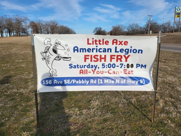 Sailing down the eternal Highway 9, I spotted some signage on the side of the road that rang my bells: Fish Fry, it said in strident red lettering.