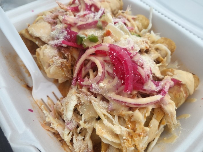 In a truck adorned by the Virgin Mary—praise be—the Breakfast Torta ($9.00) is a true sign of wonder. Aided with pickled carrots, onions, and jalapenos wrapped separately in foil, this might be the best breakfast I have ever eaten... in a parking lot.