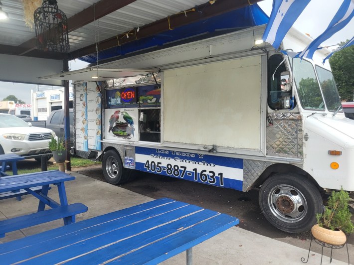 In the parking lot of the fabulously monikered Ricky’s Beauty Salon sits the well-covered Honduran food truck Los Tacos Y Sabor Catracho. With multiple dry benches to sit down and eat on, this is how seating should be done at food trucks.