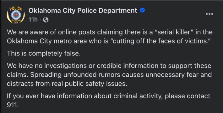 Yep, that’s right. The OKCPD and local media are not acknowledging the rumor because… they don’t want to cause a mass panic.
