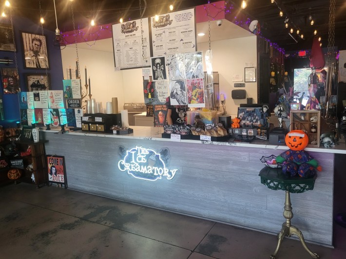 As I waited for our morbid mortician to wrangle our icy treats, I took a more nuanced look at the classic posters, original art, and other memorabilia that lined the walls of The Ice Creamatory.