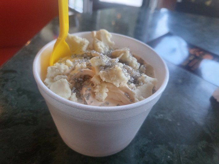My wife was a fan of the killer robotic doll Megan, so she started with the “Sweetware Glitch” ($5.25). Sugar cookie dough ice cream with pink sprinkles, silver sanding sugar, and extra chunks of sugar cookie dough on the top, this ice cream gave her taste buds a malfunction error as she had a big bite.
