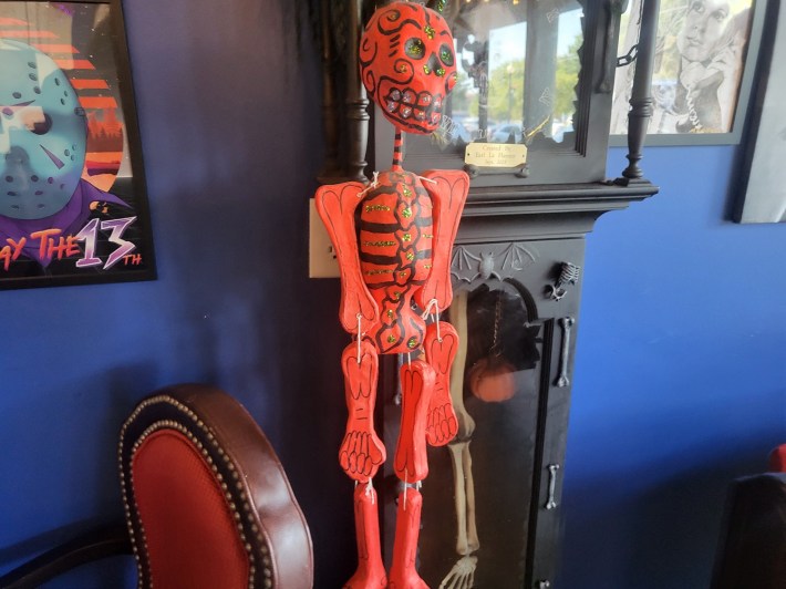 All of the perennial favorites were represented, including Jason, Freddy, and, of course, our old friend Michael. But also original pieces of art, from bone-chilling skeletons and big-nosed clowns to the folk art of Mexico, represented in a marionette with a bony smile.
