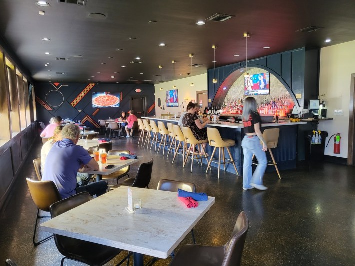 Even though the retro-futuristic design is definitely tomato-inspired, it still had a kooky, modern-bar atmosphere, which gave the place a real drinky-drink aura that drew us in as we took our seats and looked over the menu.