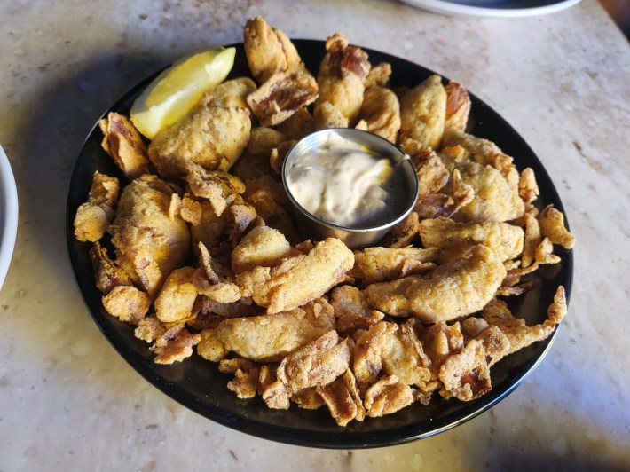 Quickly ordered and promptly brought out, the Fried Artichoke Hearts ($10.00) were a total gas. The meaty artichoke hearts were lovingly battered and fried to a perfect golden hue, served with tangy house-made remoulade sauce and fresh lemon wedges.