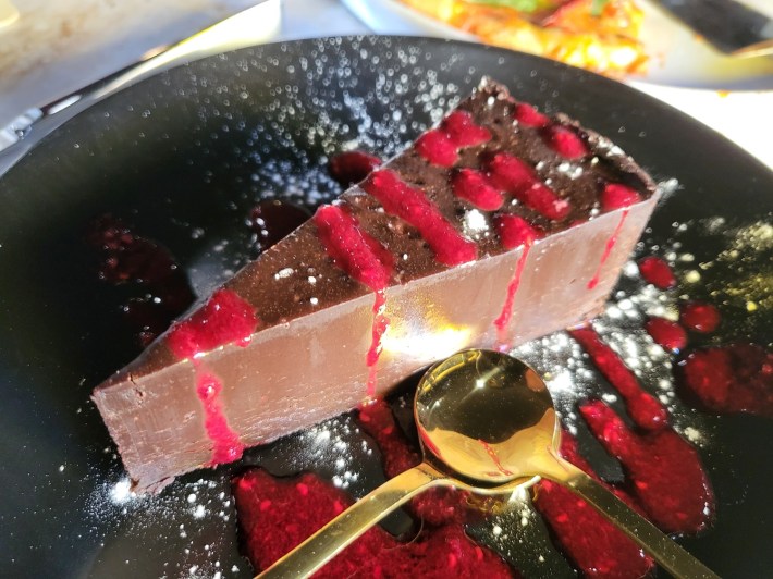 With a meal this good, there was no way I would be skimping on dessert. And, with the Flourless Chocolate Cake ($10.00) on offer, why not? The perfect capper to the meal, it was a “dense and fudgy” flourless cake topped with a zingy house-made raspberry sauce.