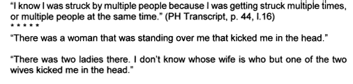 For example, Wadley claims he was struck by multiple people multiple times and wasn’t sure who landed what. In fact, he couldn’t even tell which wife kicked him in the head.