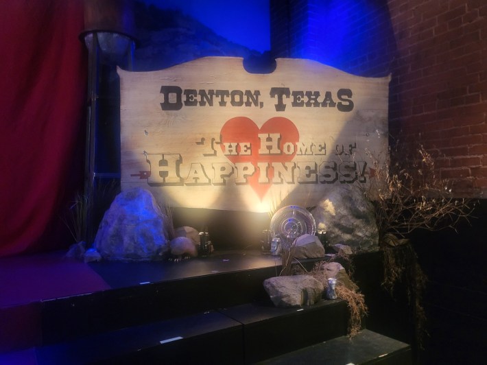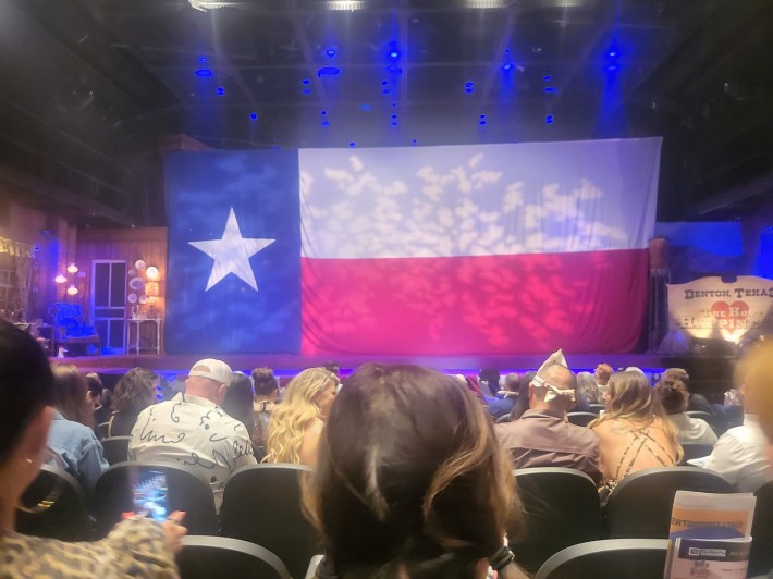 Walking into the Lyric Theatre on 1727 NW 16th St., I had no expectations for the show. But, after getting a bag of props and, why not, a Rocky shortbread cookie, in the lobby, as we entered the theatre proper, I noticed an impossibly large Texas flag draping the whole stage from end to end.