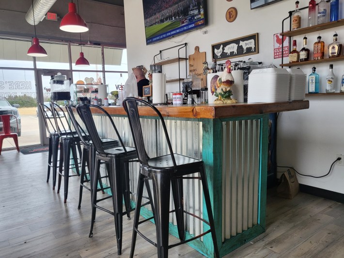 As the hearty cologne of sizzling beef wafted through the building, I ordered up front and then found a seat in the faux-aluminum chairs. Besides the grand design of true cow culture that permeated the place, what really got me was the working bar, serving a limited selection of alcoholic drinks that will wet anybody’s whistle.