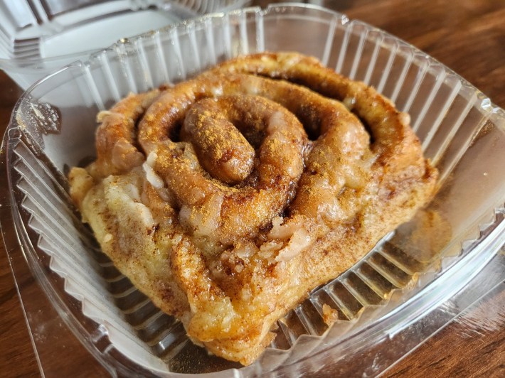 Thankfully, they still had Cinnamon Rolls ($5.00) and, after that, it was game over, man! Served up hot, this roll was moist and sticky like a good cinnamon roll should be. I gobbled it all up, making circles with my fingers on the tray as I scraped up the icing and crumbs, almost forgetting I already had half a cow, a pig, and a (chili)dog in my belly.