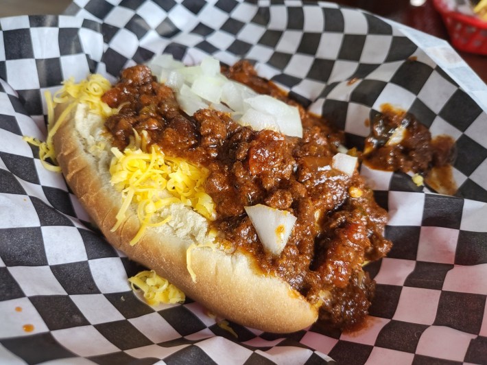 Beyond the burgers and sandwiches, Biglow’s chili is reportedly top notch. The waitperson told me the owner is from Cincinnati—one of the best chili towns in the country, no lie!—so I absolutely had to try his take on the Chili Dog ($7.00) as an aperitif, if you will.