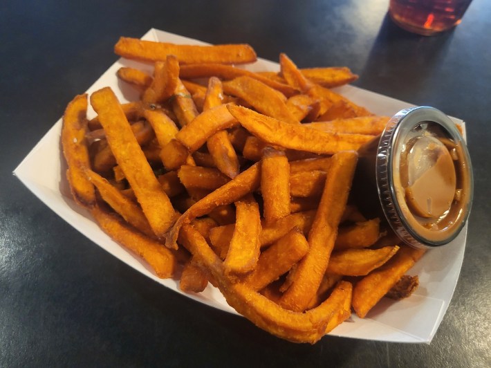 Crispy, crunchy and plentiful, with a well-defined orange-red punch, these airy sweet potato darlings were top tier and, as I began to consume them, could have comprised a complete meal, with a peanut sauce that, I imagine, pretty much works on anything.