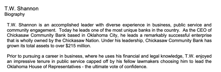 T.W. Shannon – the former Oklahoma Speaker of the House turned sad, driveling right-wing social media political influencer – announced he needs a job and, as a result, is going to run for Lt. Governor, giving Oklahoma’s Republicans (hopefully) one last opportunity to reject him on a statewide ballot.