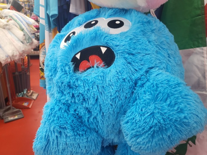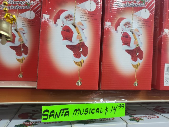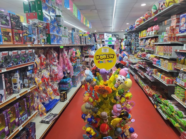 Walking past the ornate cavern of tables and chairs off to the side where people ate their hot lunches, I passed scads of cartoon character lanyards, non-American sports team hats, and grande plush dolls—only to discover another aisle filled with the dreams of the youth: tasty cookies and tastier candies, the coolest semi-legal toy brands and, why not, leftover Santa dolls riding up that North Pole.