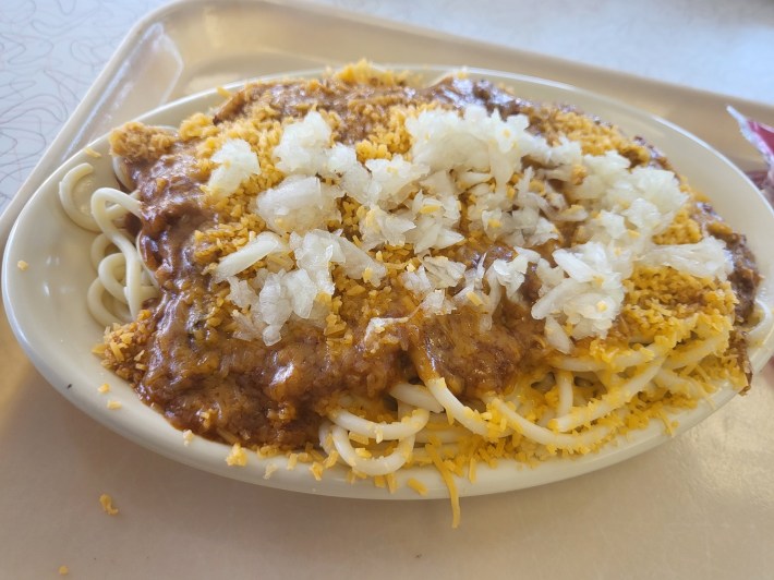I too have continued this legacy of Coney Island, carried on with not only the tradition of hot dogs and chili dogs, but entire bowls of hot chili, Frito chili pies and their real claim to fame, spaghetti served Greek-style, all still for only a couple of dollars.