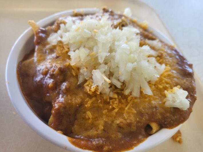 As I walked to the counter, I ordered two Chili Dogs with cheese, a bowl of Oklahoma-born Chili Frito Pie with cheese, a plate of Greek spaghetti with chili and cheese and, plucked from a tub right next to the register, a triangle of freshly made Baklava, one of this state’s best treats.
