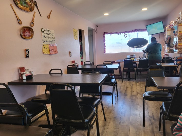Inside it is relatively small, offering just seven tables in the petite dining room. For some that might feel cramped and tight, but if you’re Latino, it makes the whole thing real homey, like your abuela’s kitchen on a Sunday night.
