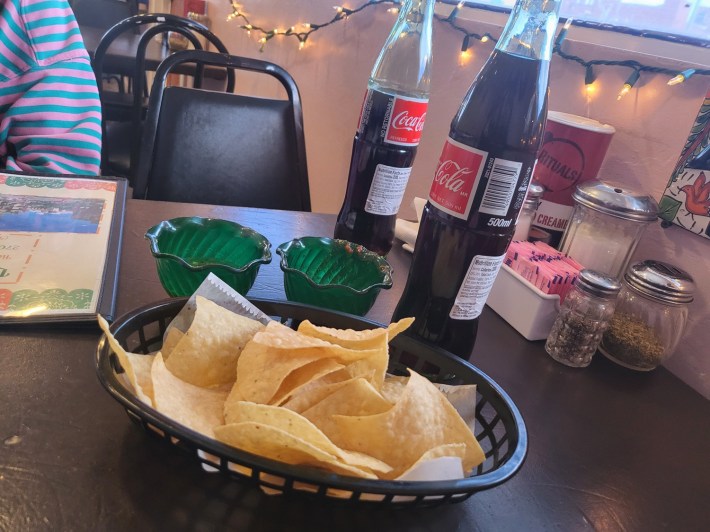 And just like that, the lone server—a tiny, middle-aged woman—emerged from the kitchen with well-worn menus, a basket of chips, and two kinds of salsa, both still steaming in their bowls. That’s when I knew I was in the right place.