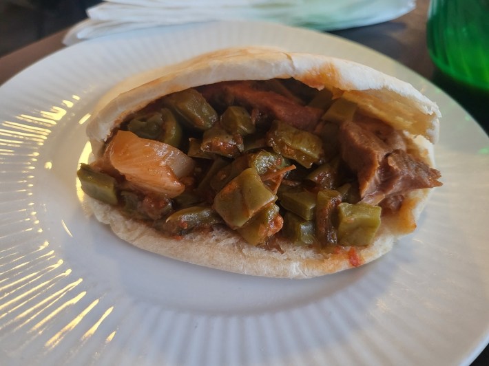 From the very first bite, the tender pork, and especially the sliced and diced nopales—edible cactus meat—were intense and truly on-point. The contents spilled out of its pillowy, bready bed onto the plate as my wife and I shared it, and it was one of the best gorditas in town, bar none.