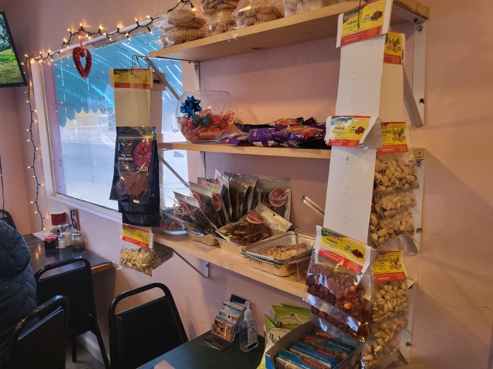 In my imperfect but enthusiastic Spanish, I told our server how much I enjoyed the meal and that we'd be back soon. She thanked me, and on the way out I spotted a small selection of bagged treats—spiced nuts and baked goods—by the door.