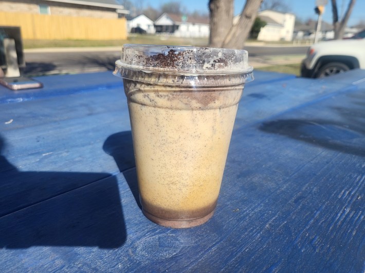 Although she had planned to get the Dulce Latté, the Cookie and Cream looked too good to pass up. Like the name suggested, crushed Oreos floated dreamily in a coffee-forward latte, balanced on a good layer of chocolate syrup coating the bottom, making this a truly decadent experience.