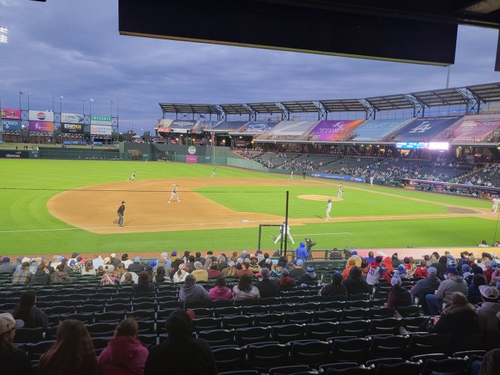 My wife and I took our seats along with my brother-in-law and his daughter—her first ballgame—primed for some pulse-pounding minor league baseball action. Thankfully, the accessible seating section was easy to find and very spacious for my kind.