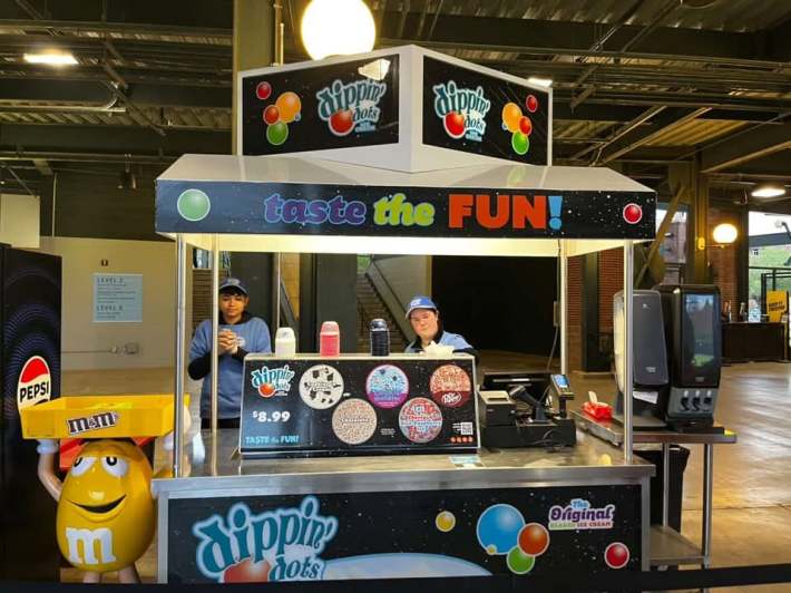 By the third inning, I was stuffed by my foot-long and my niece had finished her own child-friendly nachos, but I could see deep in her eyes that she wanted a sweet treat. That’s when, across the way, I spotted Oklahoma’s own most wanted ice cream treat, Dippin’ Dots.