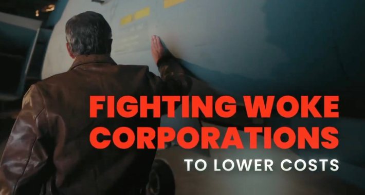Yep, he’s coming to fight you, Woke Corporations… just as soon as he finishes his private moment with the jet and adjusts his leather jacket in a dramatic light beam.