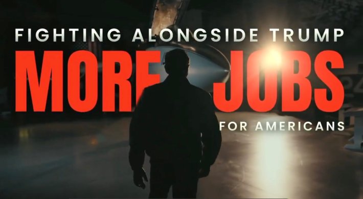 Maybe I have some boob-derived version of pareidolia, but can anyone else not not-see the giant breast jabbing the word JOBS? If so, does that mean Gentner Drummond is fighting for more boob jobs for Americans? I guess that would make sense, considering how popular plastic surgery is in Mar-a-Lago.