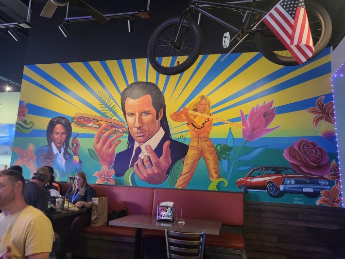 Walking into the place, it immediately had the coolest vibes around town, starting with the pot-friendly Tarantino-inspired wall decorations featuring the Bride, Jackie Brown, and Vincent Vega. Out of sight, brother!