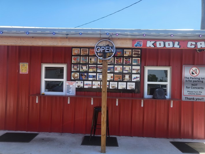 So, while I waited, Sean “watered” the weeds near the road as I noticed that there is a summertime addition to Just Burgers, a small ice cream shack selling shakes and novelties that looked pretty darn good.