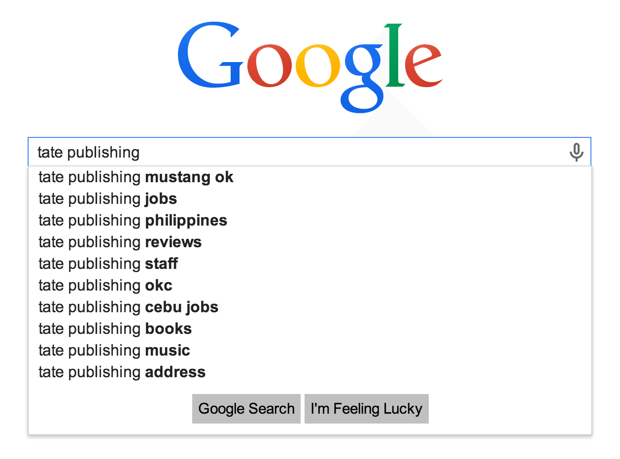 According to this internal email, Tate Publishing is trying to rig Google autocomplete…